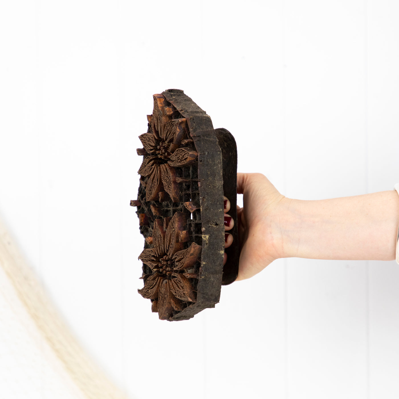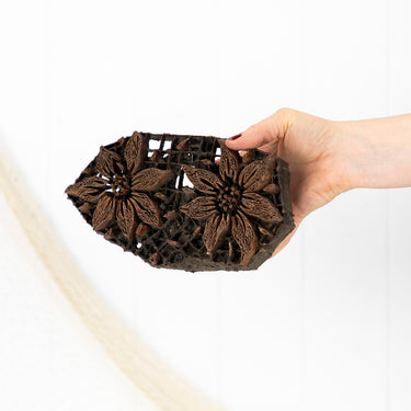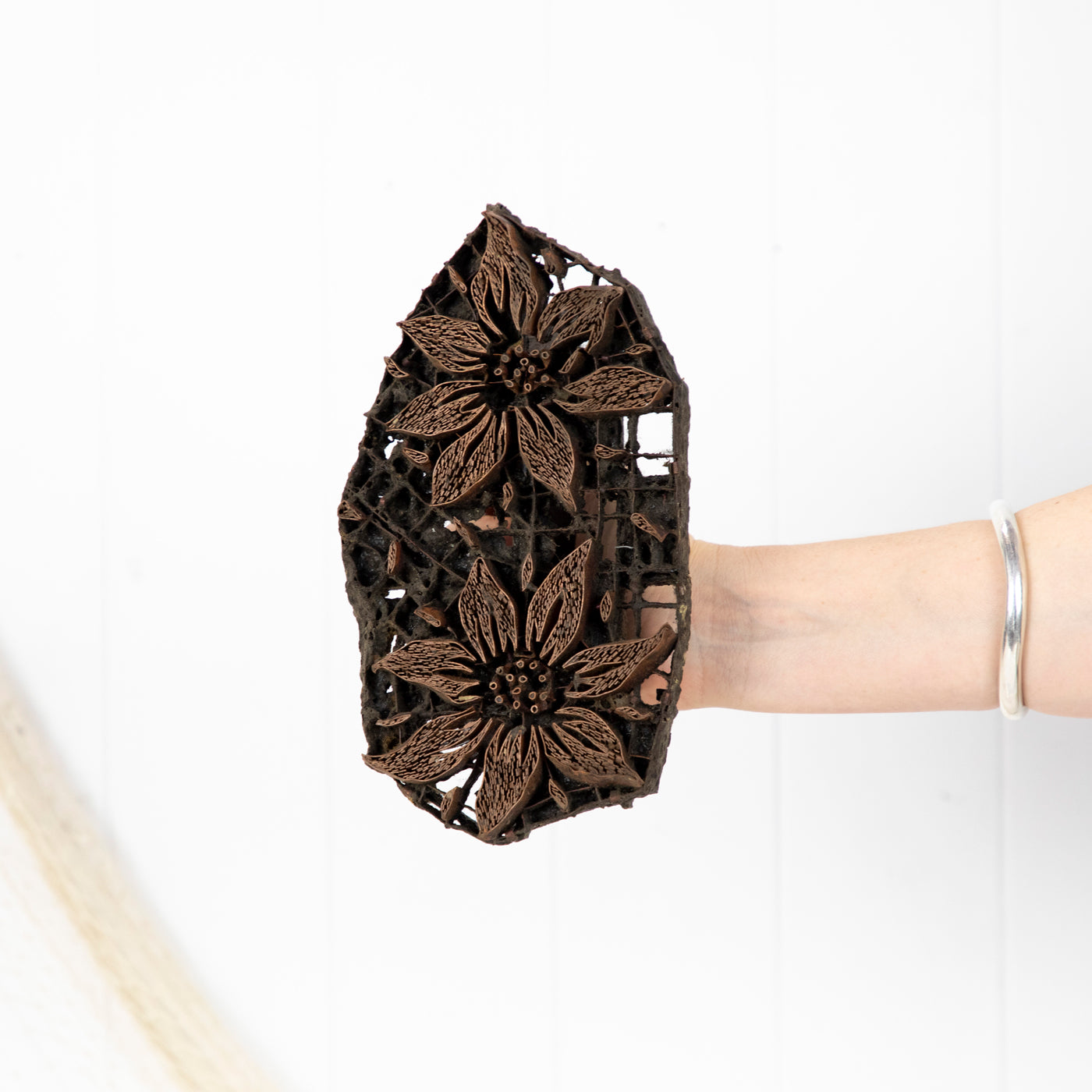 This intricate copper stamp is antique and was used in the production of batik fabrics.