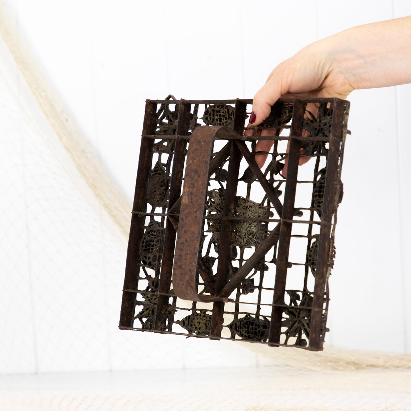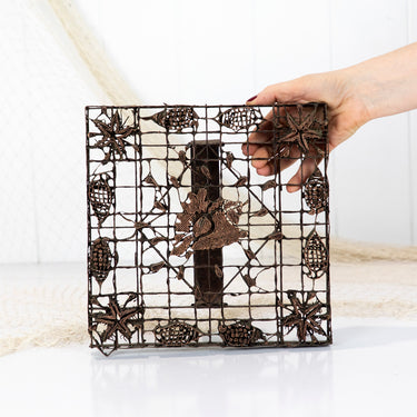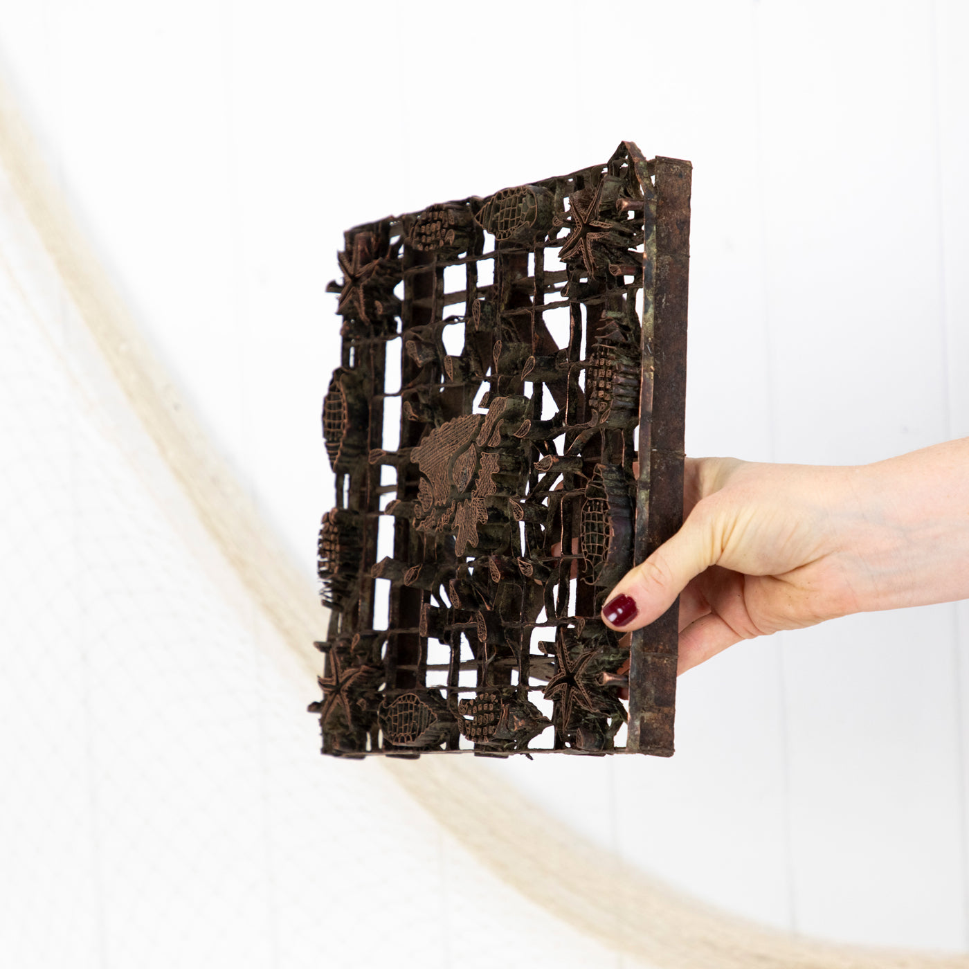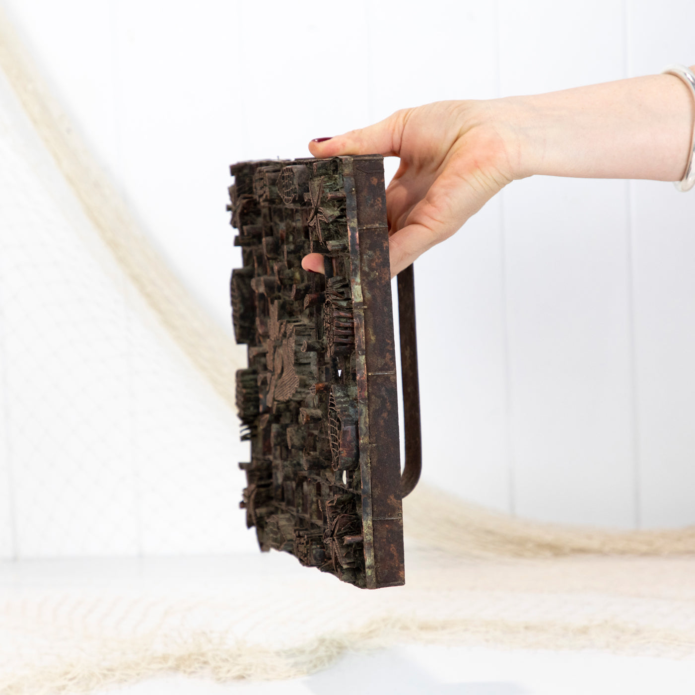 This intricate copper stamp is antique and was used in the production of batik fabrics.
