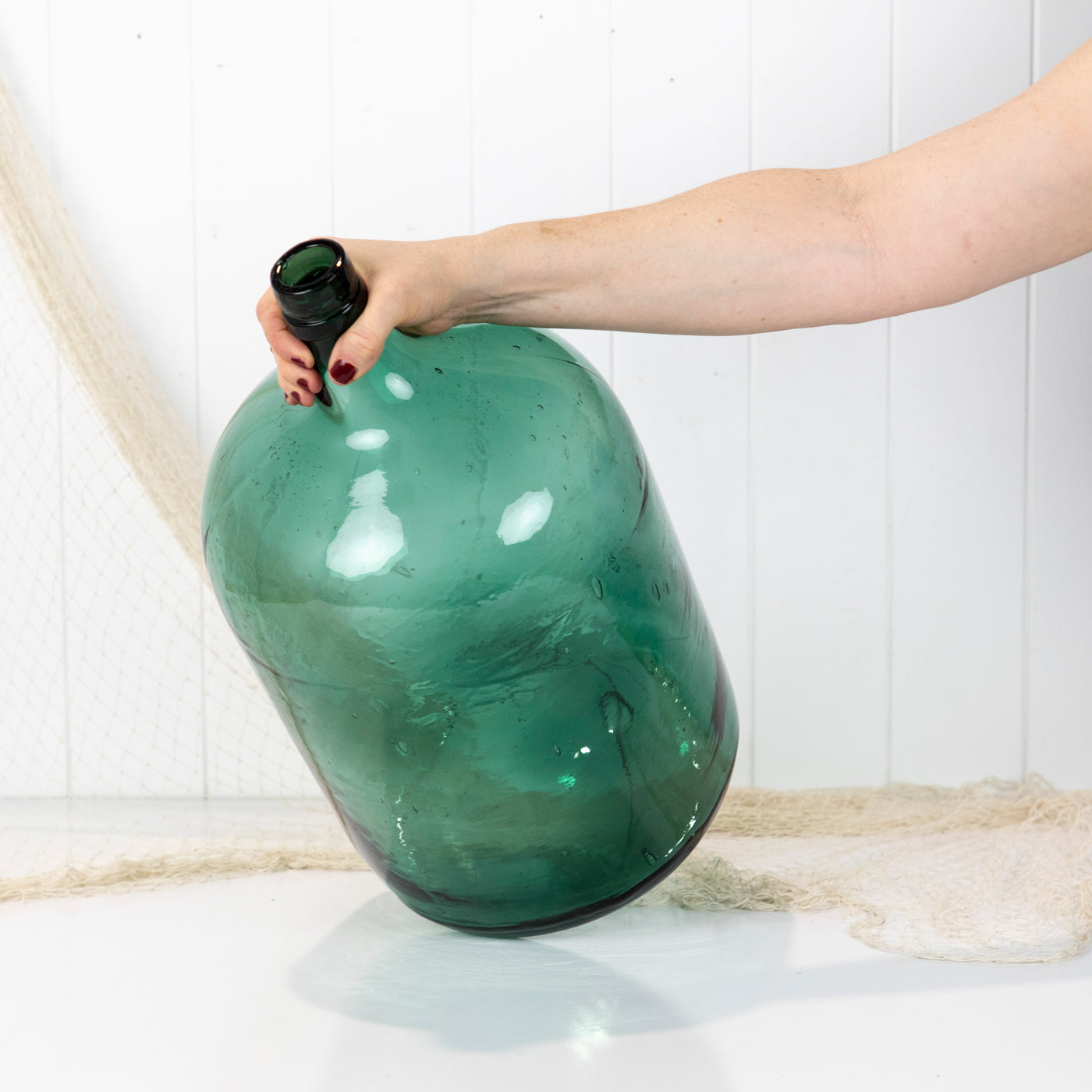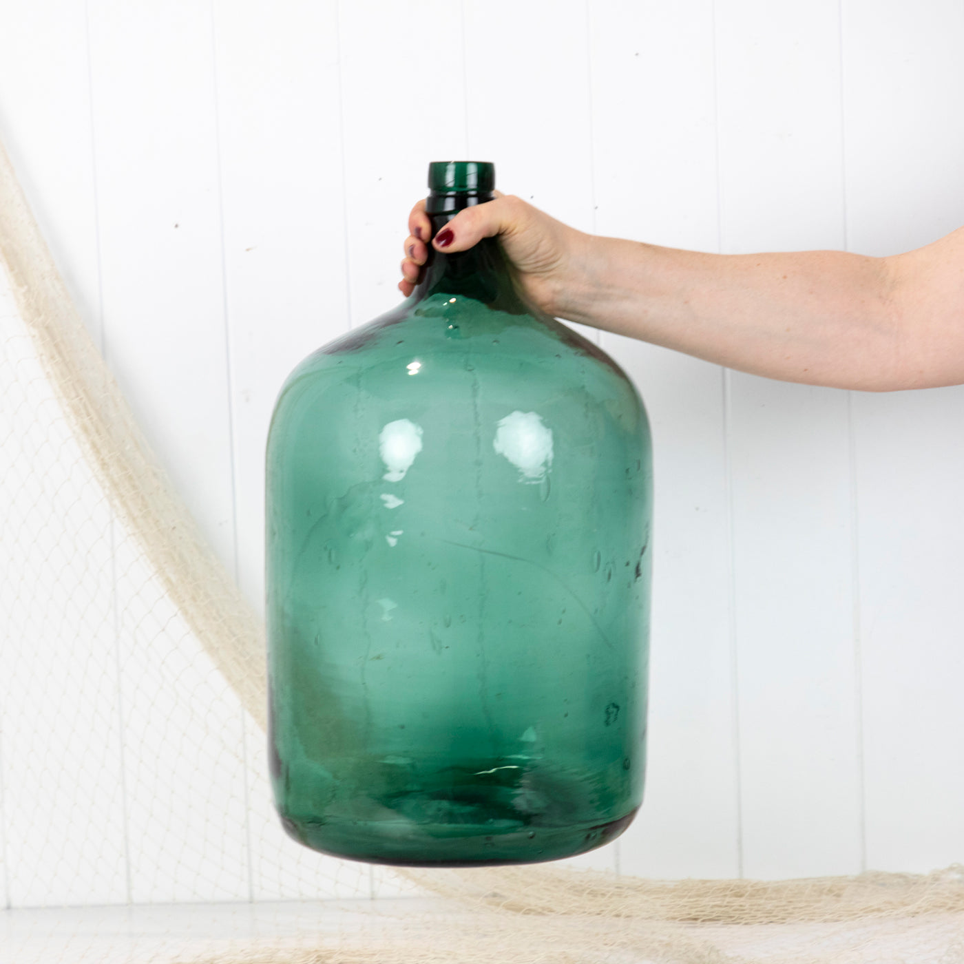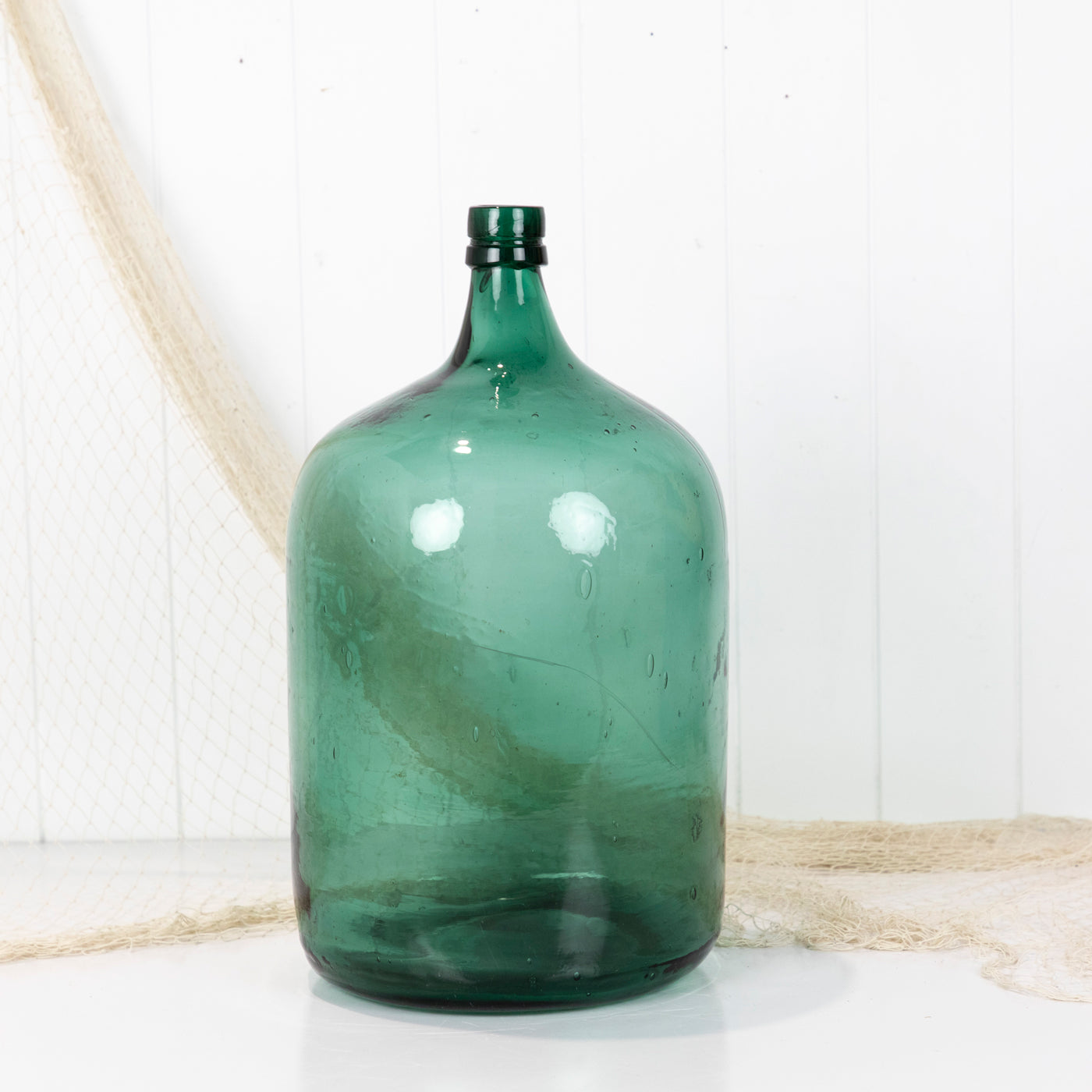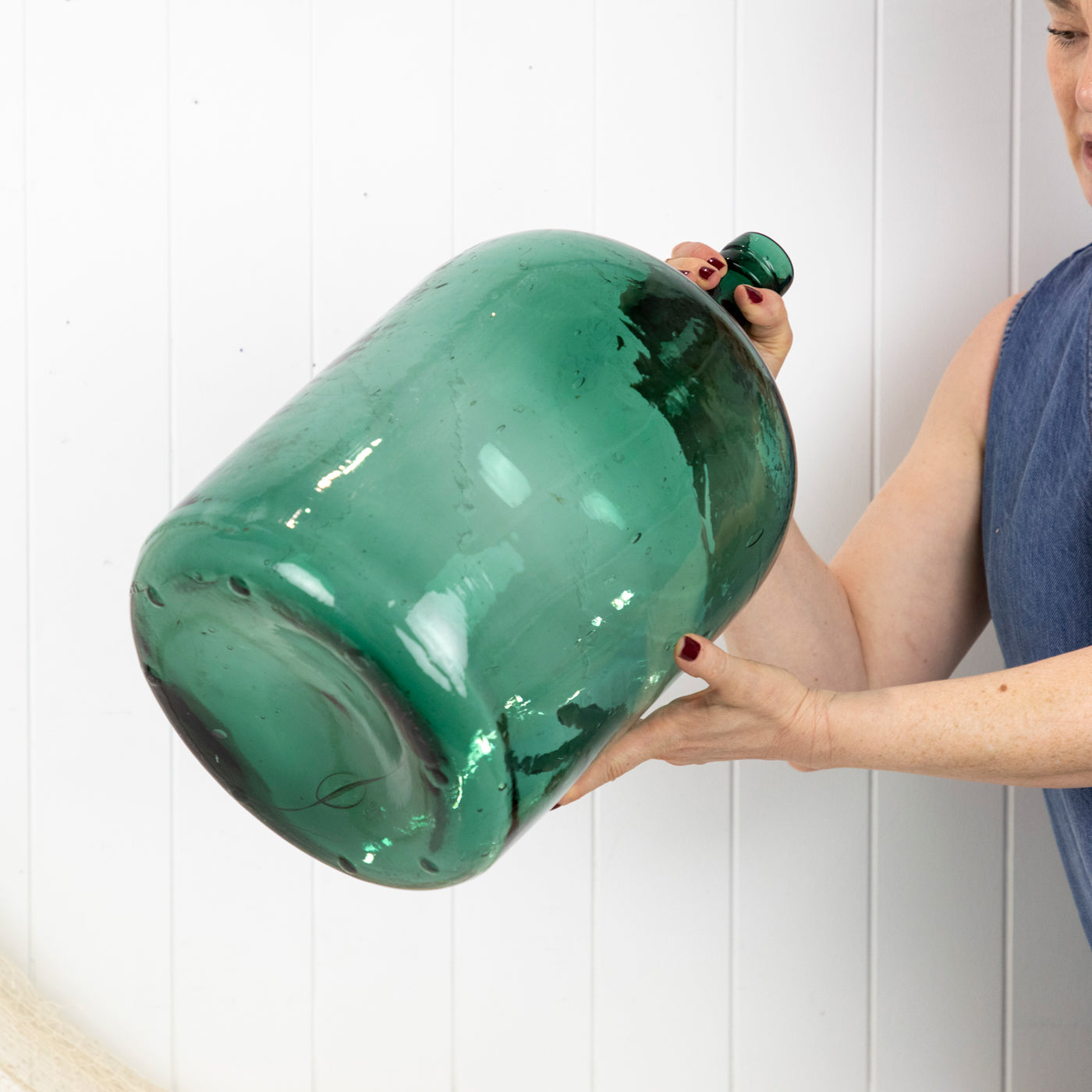 This wonderful old demijohn is made from vibrant green glass.