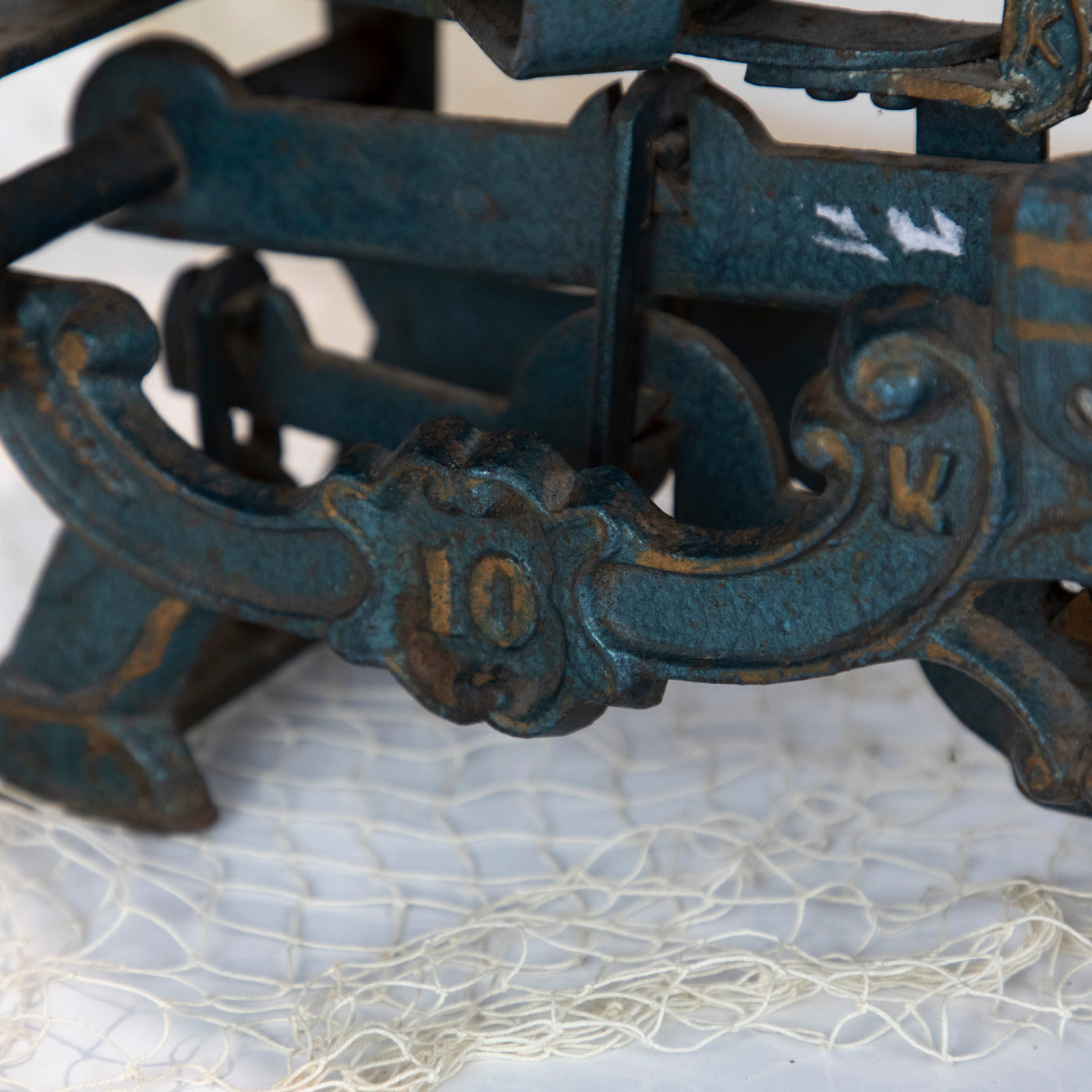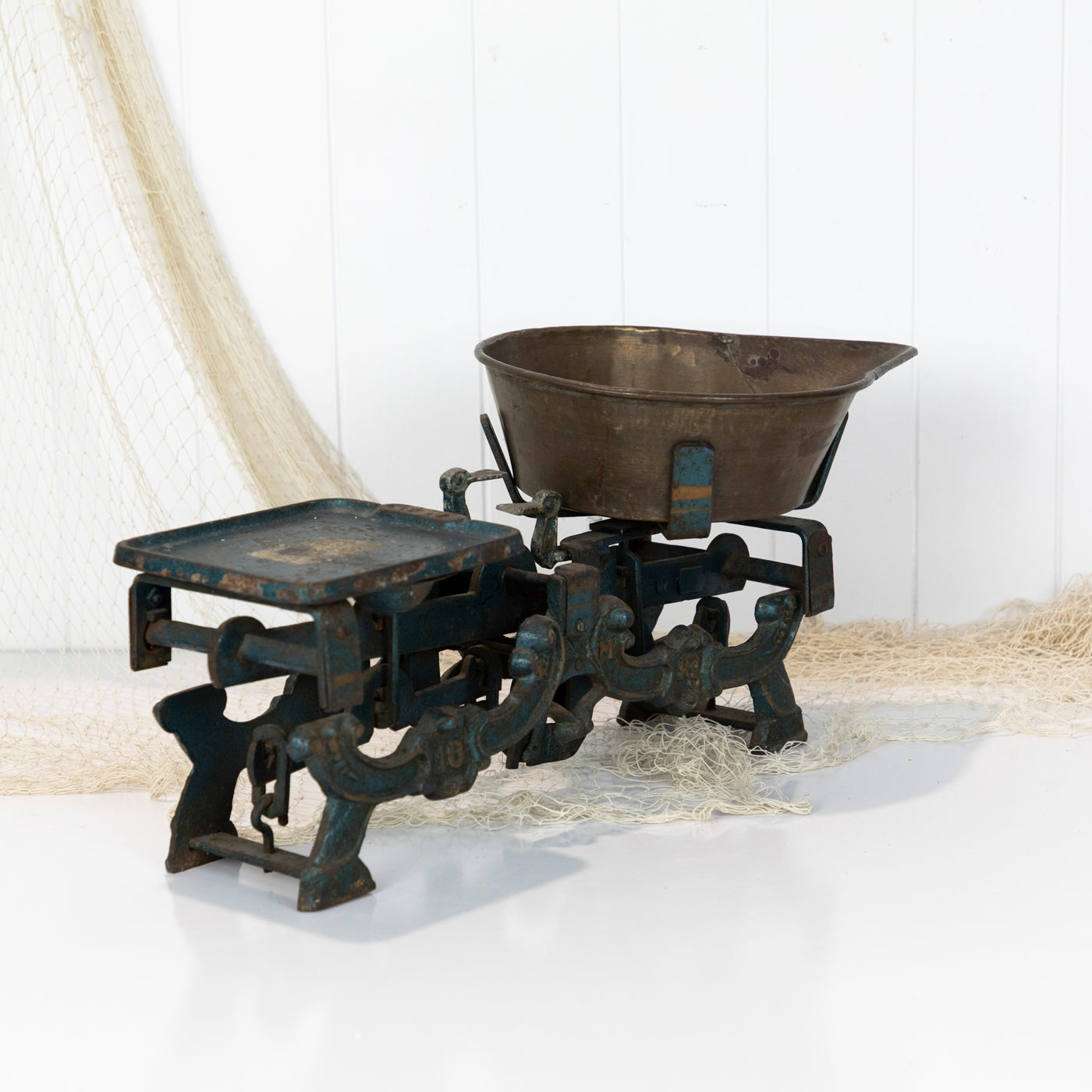 Made with cast iron it has a wonderfully worn blue finish, and the brass bowl has a beautiful patina.