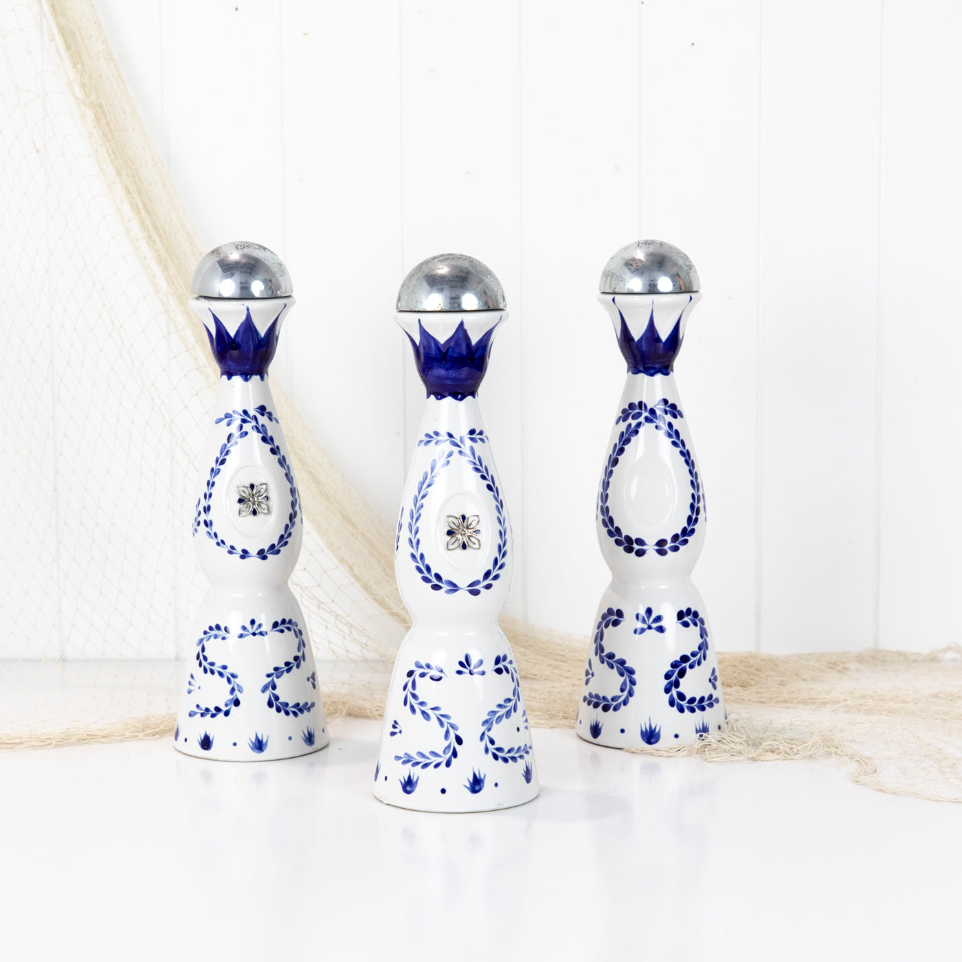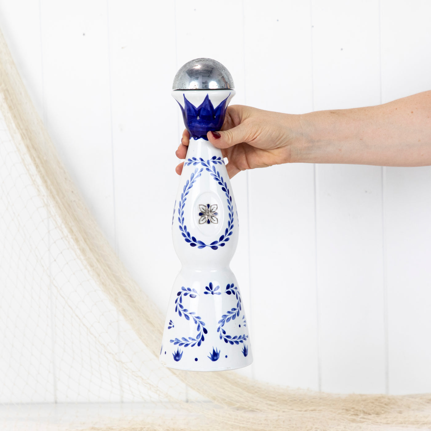 The bottles are made of white ceramic, and the design is often characterised by a feathered pattern in cobalt blue, as seen in the iconic Reposado bottle. The process of creating the bottle involves several steps, including moulding the clay, firing it in a kiln, applying a glaze, and then hand-painting the design.