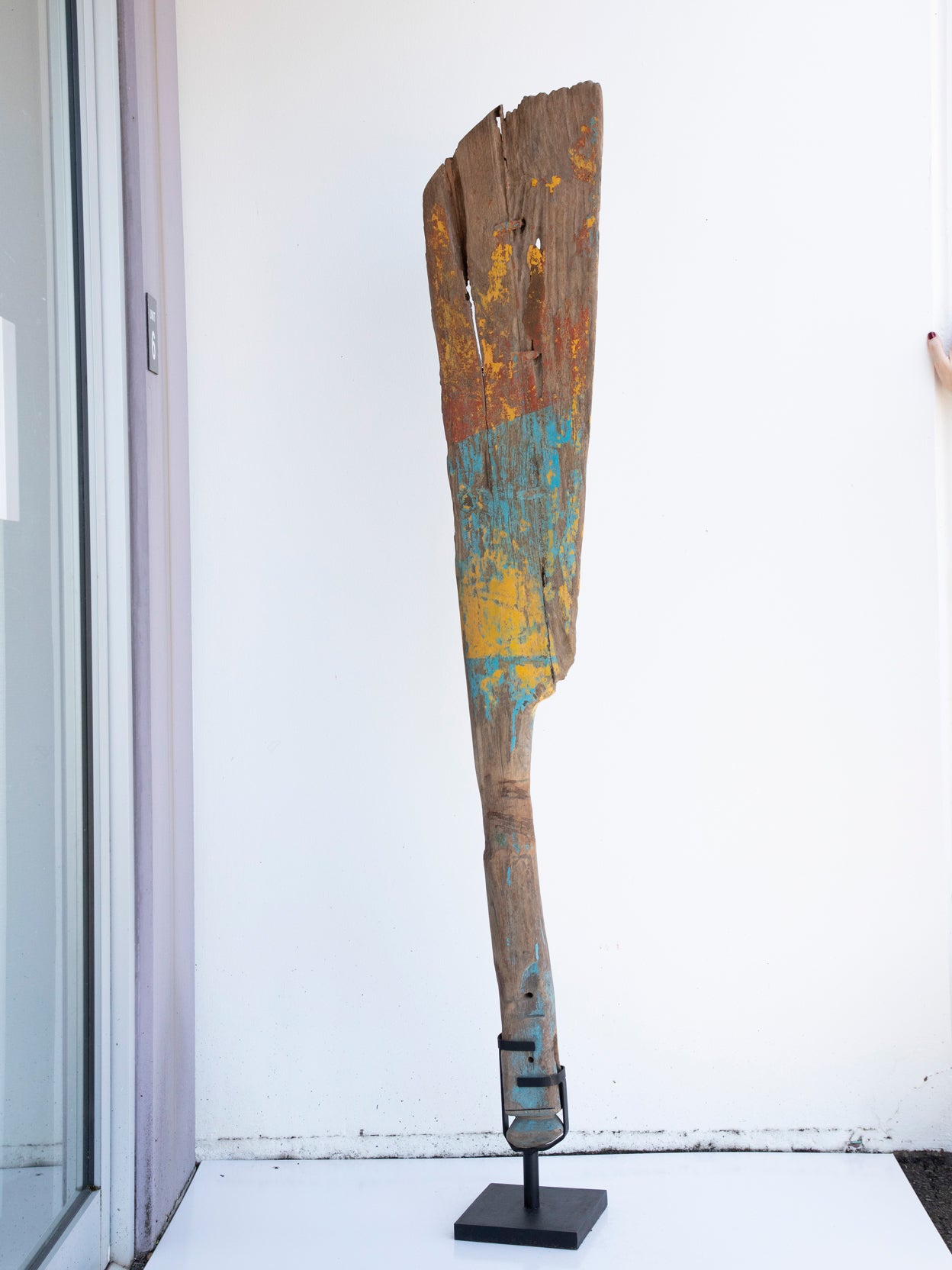 Each rudder is unique with their colour combination and lovely worn patina. A stand has been custom made for each piece.
