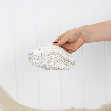 Faded with age it is pitted and grey on the outside with gorgeous barnacle growth.
