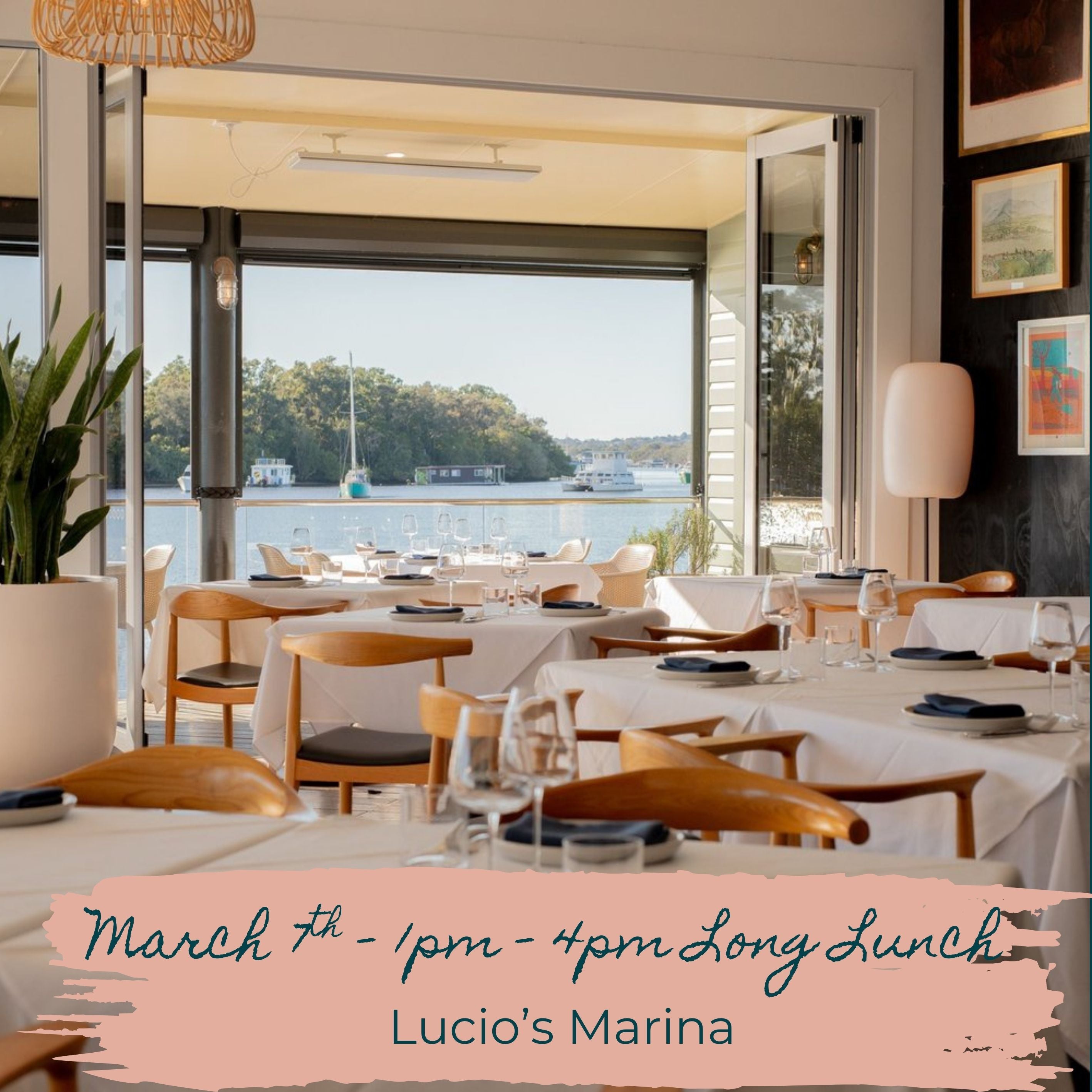 Saturday 7th March 1pm - 4pm Long Lunch at Lucios at Noosa Marina.