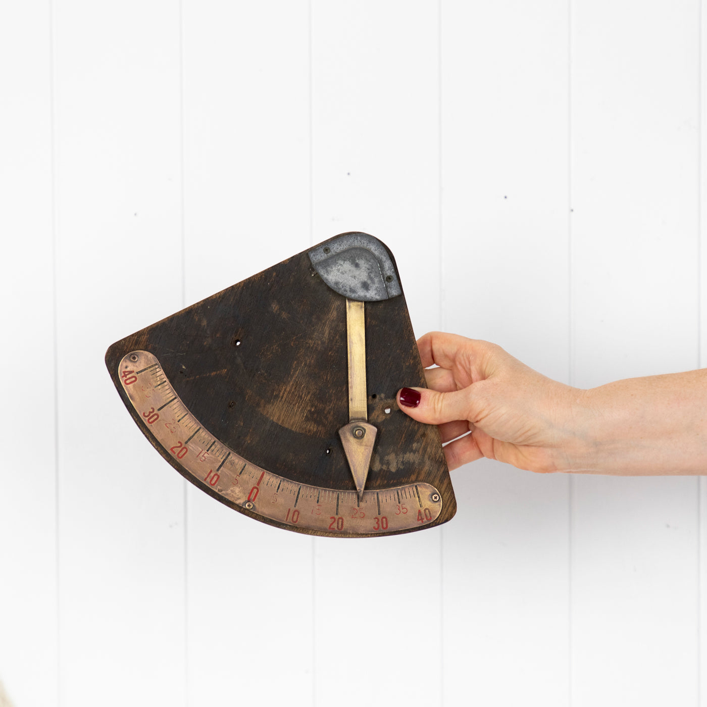 This lovely old timber and brass clinometer has certainly seen some time at sea!