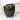 Used to carry goods for trade, it has a glossy dark brown glaze and irregular, handcrafted shape. a few specks of blue paint are scattered around the pot.