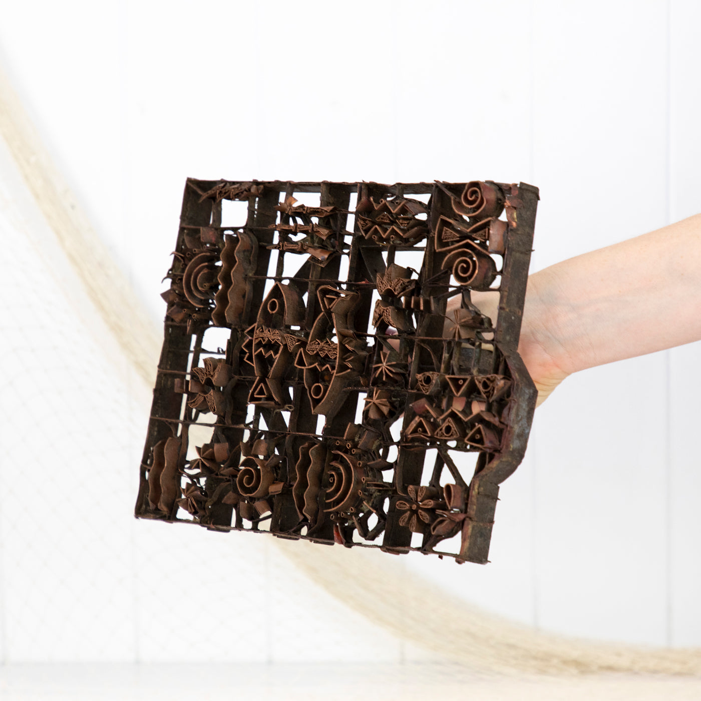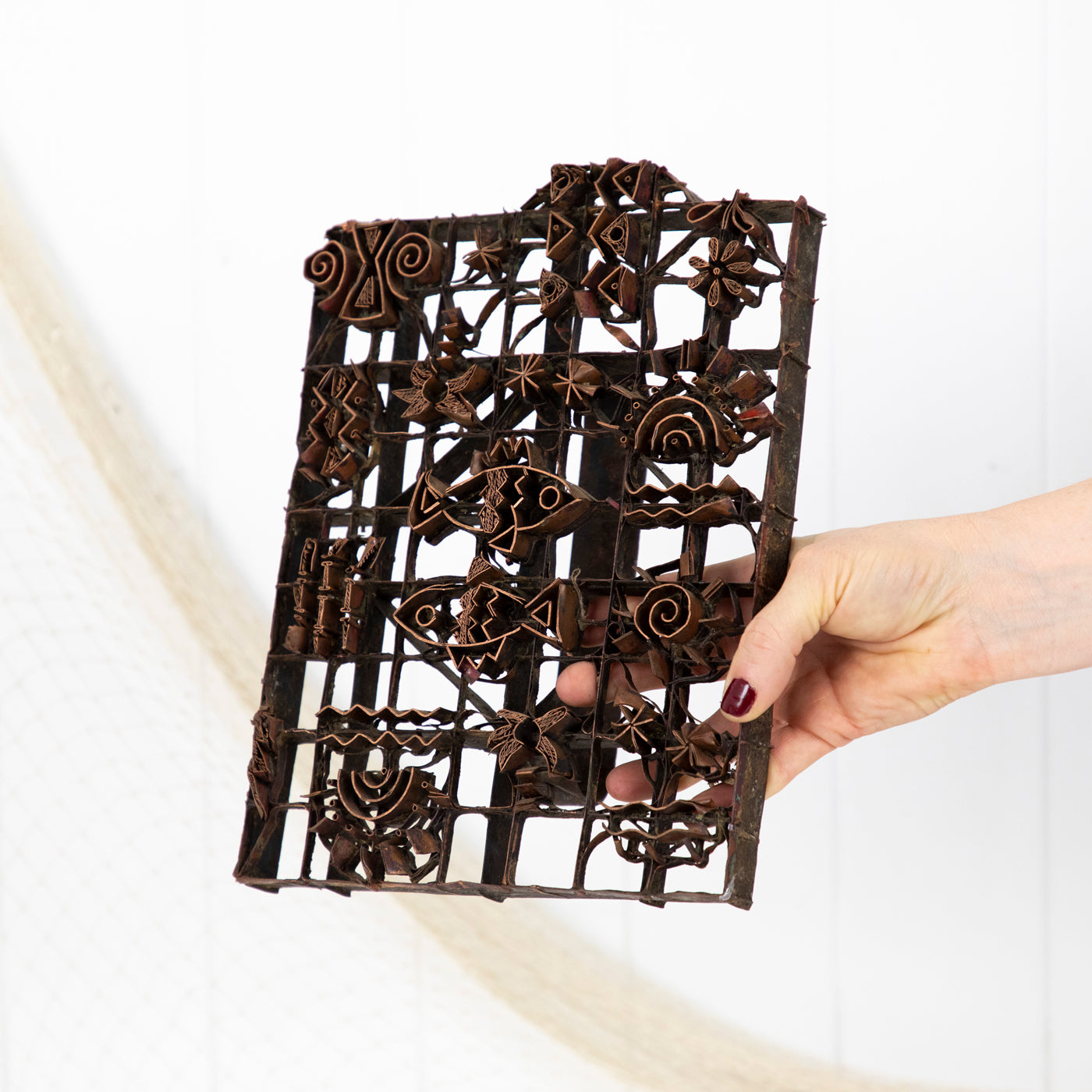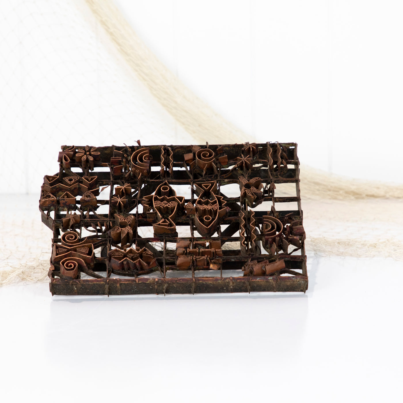 This intricate copper stamp is antique and was used in the production of batik fabrics.