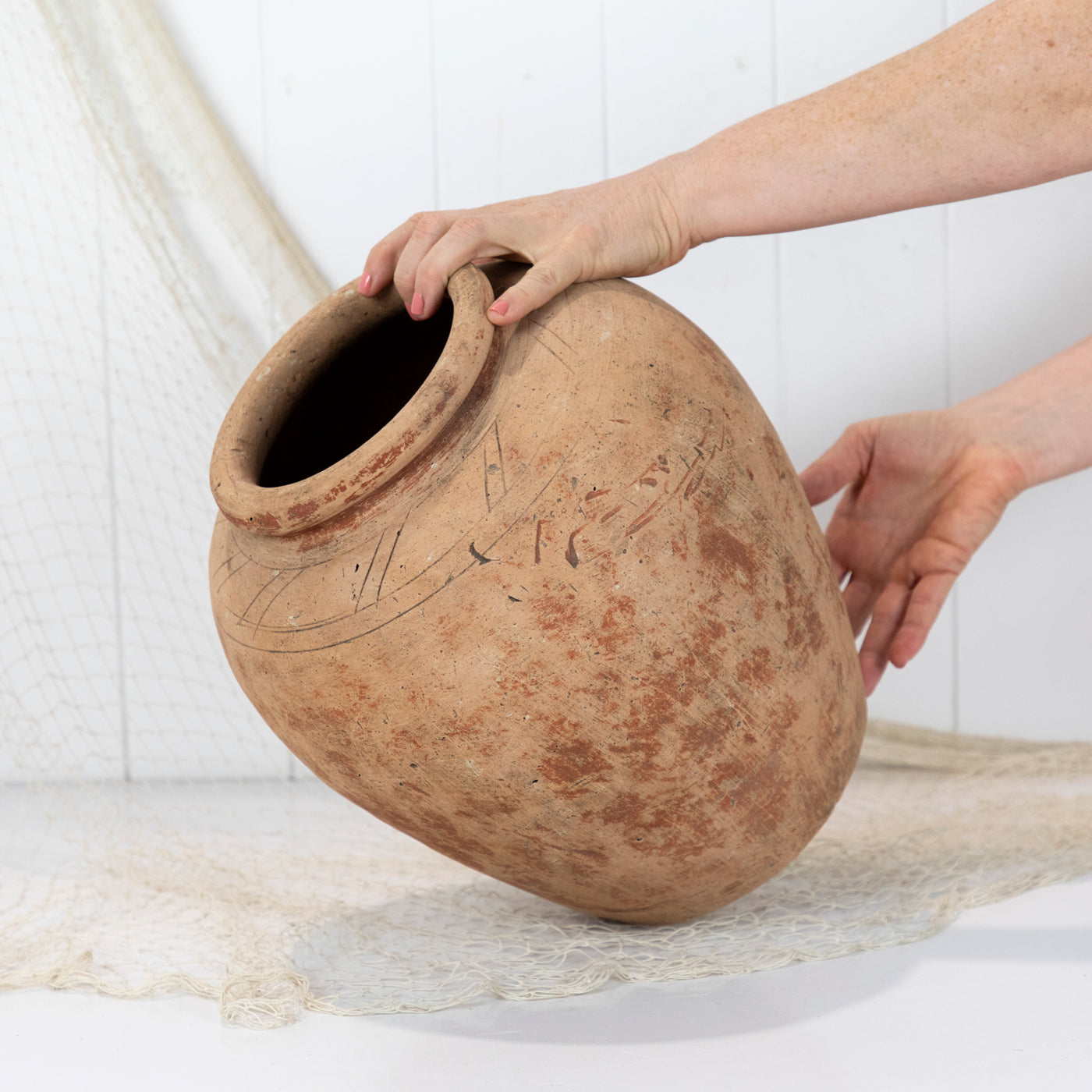 Made of clay this piece with its lovely warm colour & texture would make a great addition to a bookcase, foyer or bench.