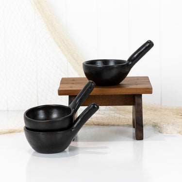 Clay Bowls with Ladle- Black #4881a