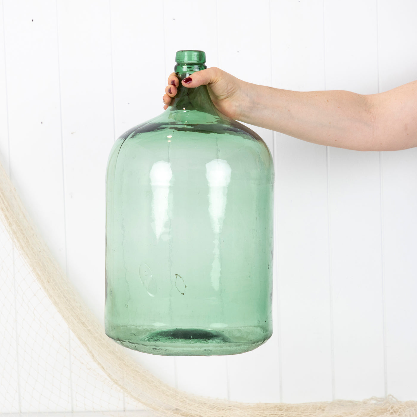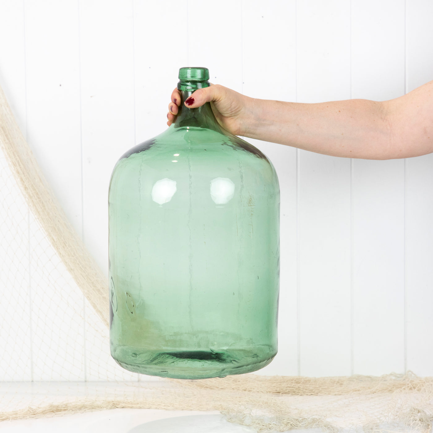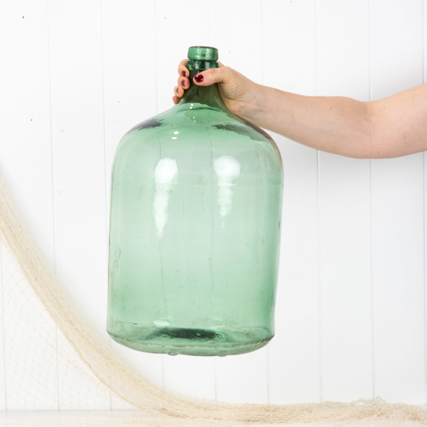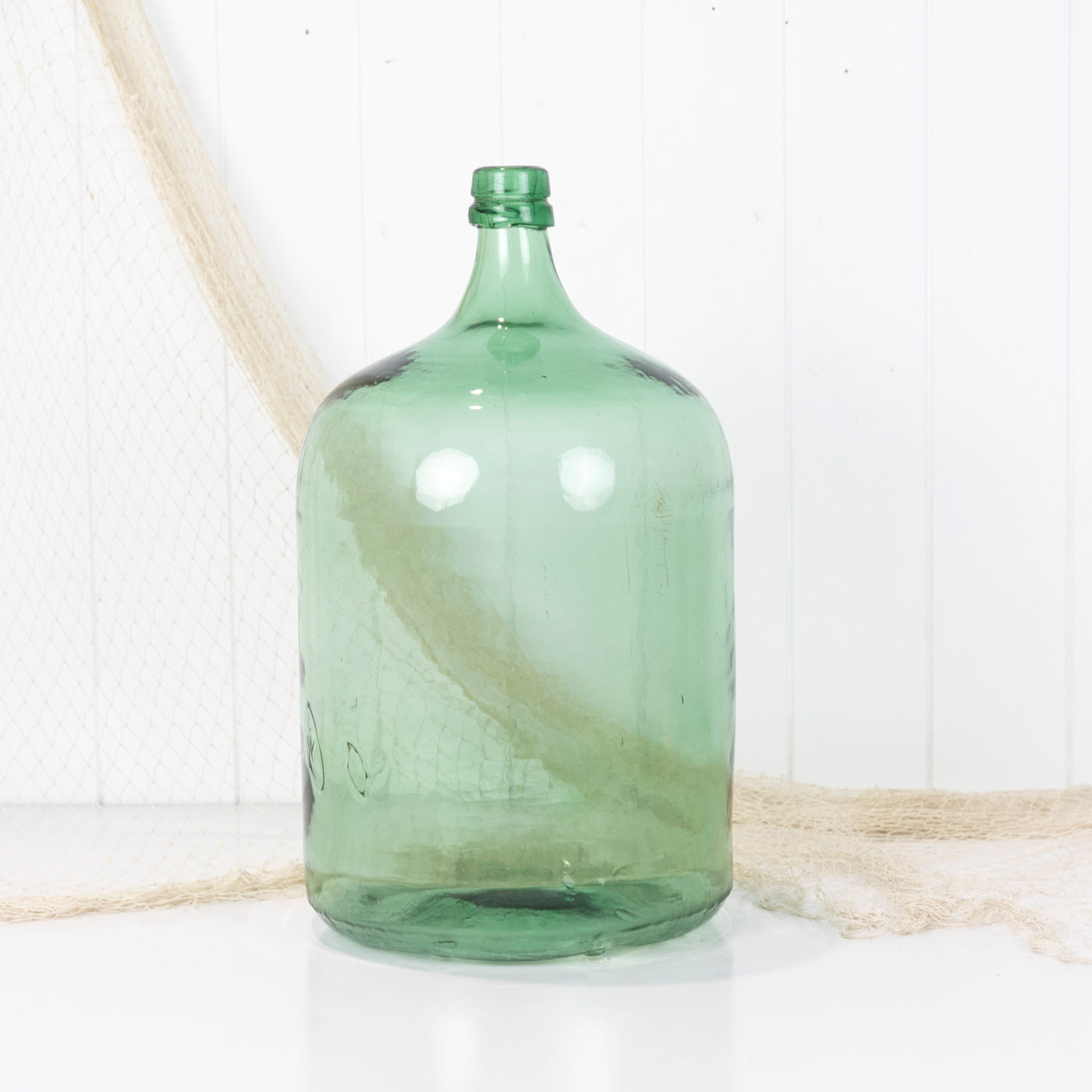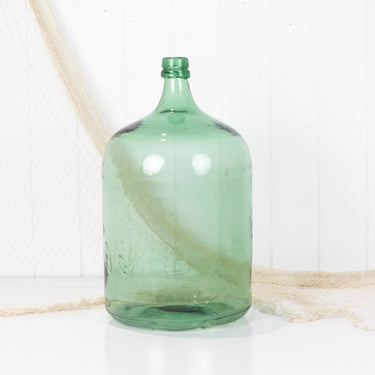 This wonderful old demijohn is made from vibrant green glass.