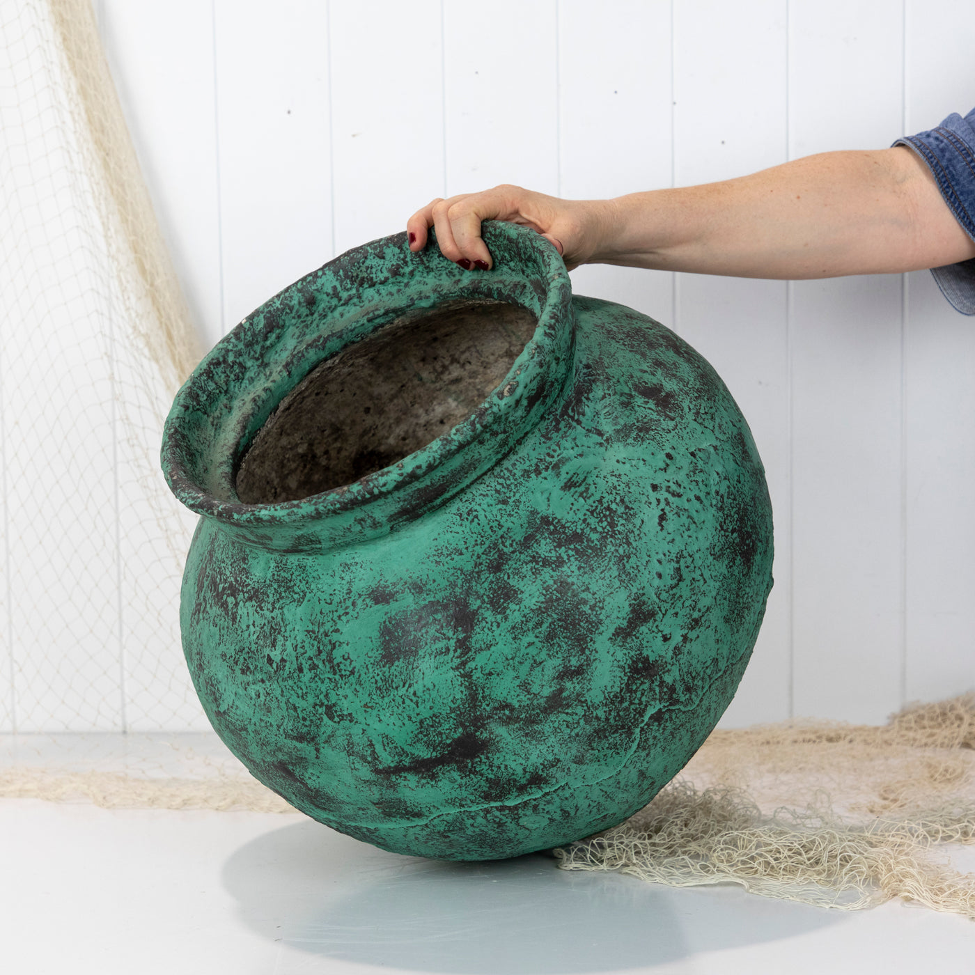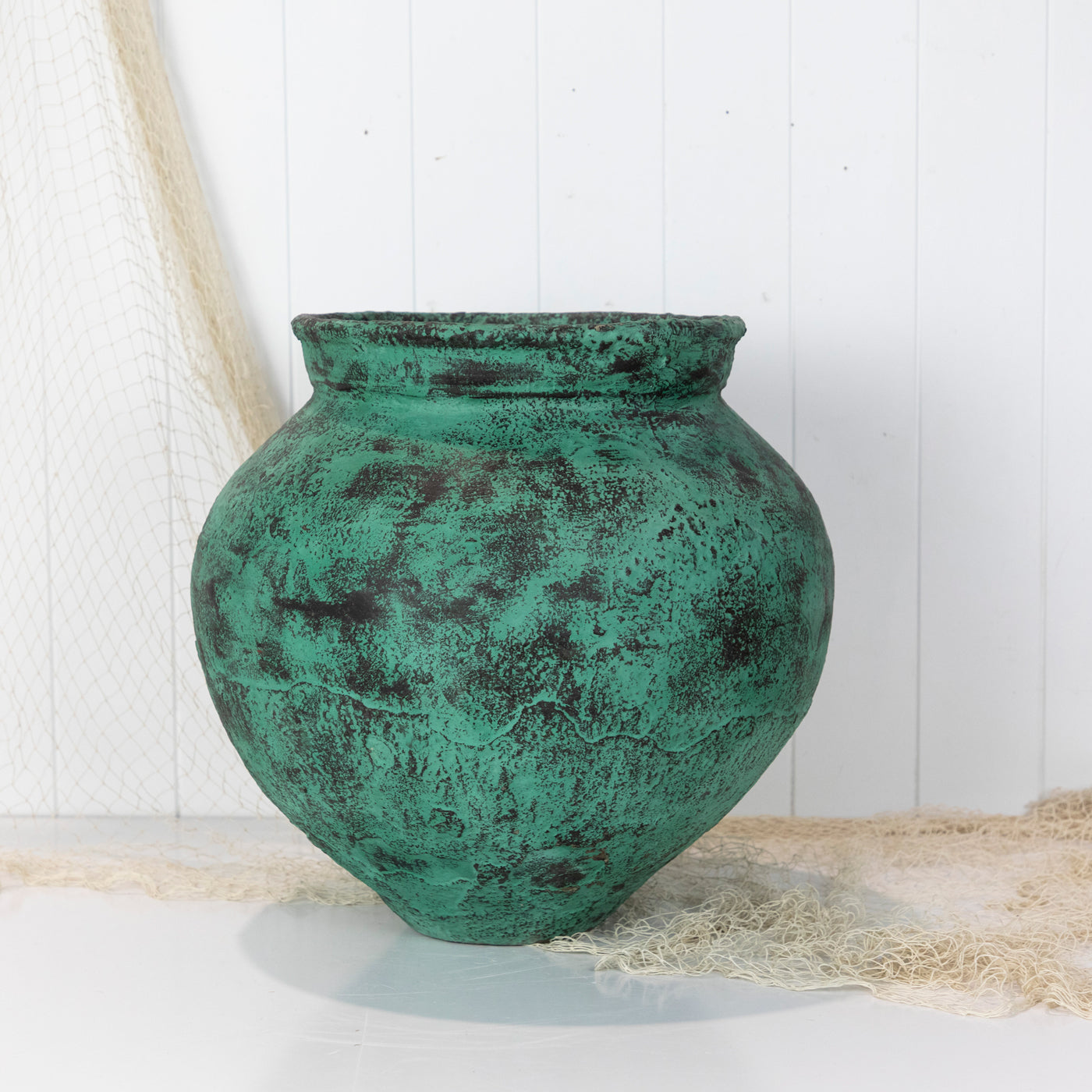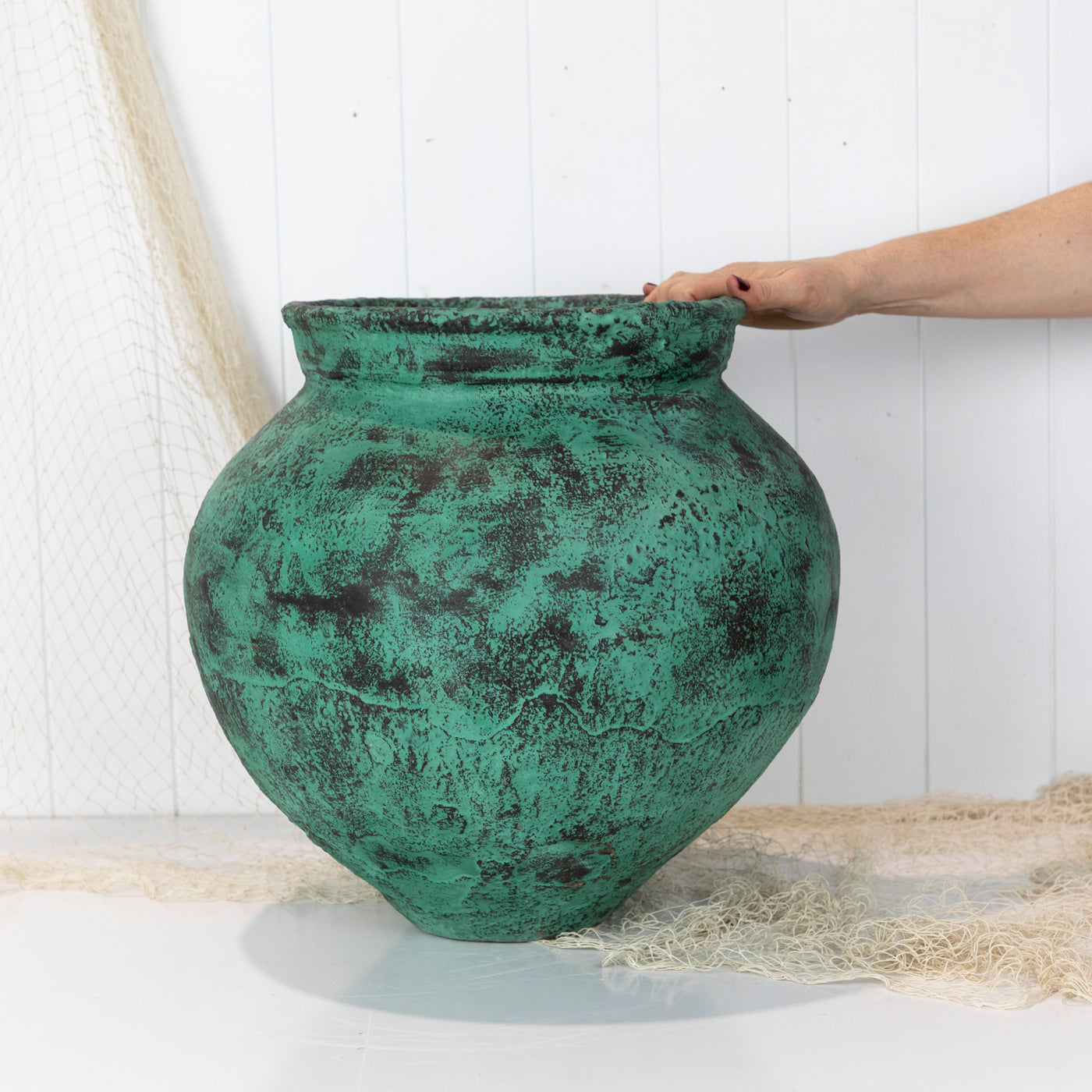 This pot was a fabulous find! Found in the back streets in Indonesia, this pot has the most beautiful green colour and texture.
