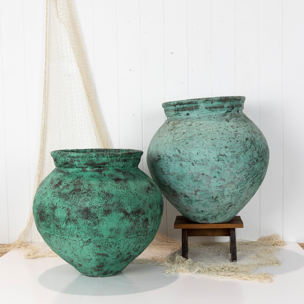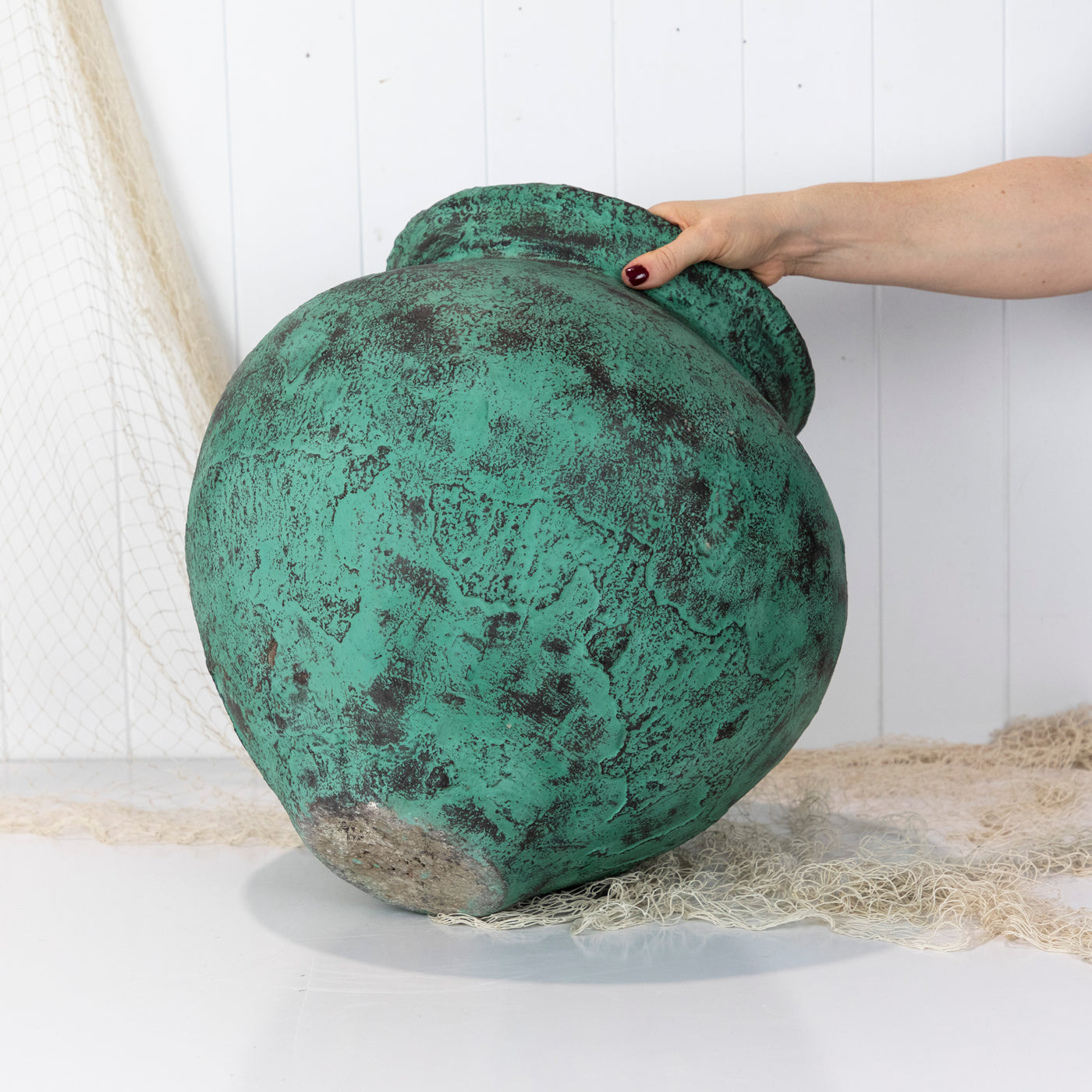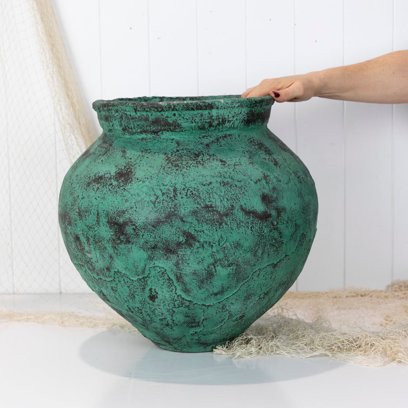 This pot was a fabulous find! Found in the back streets in Indonesia, this pot has the most beautiful green colour and texture.