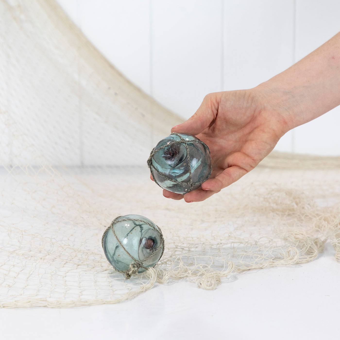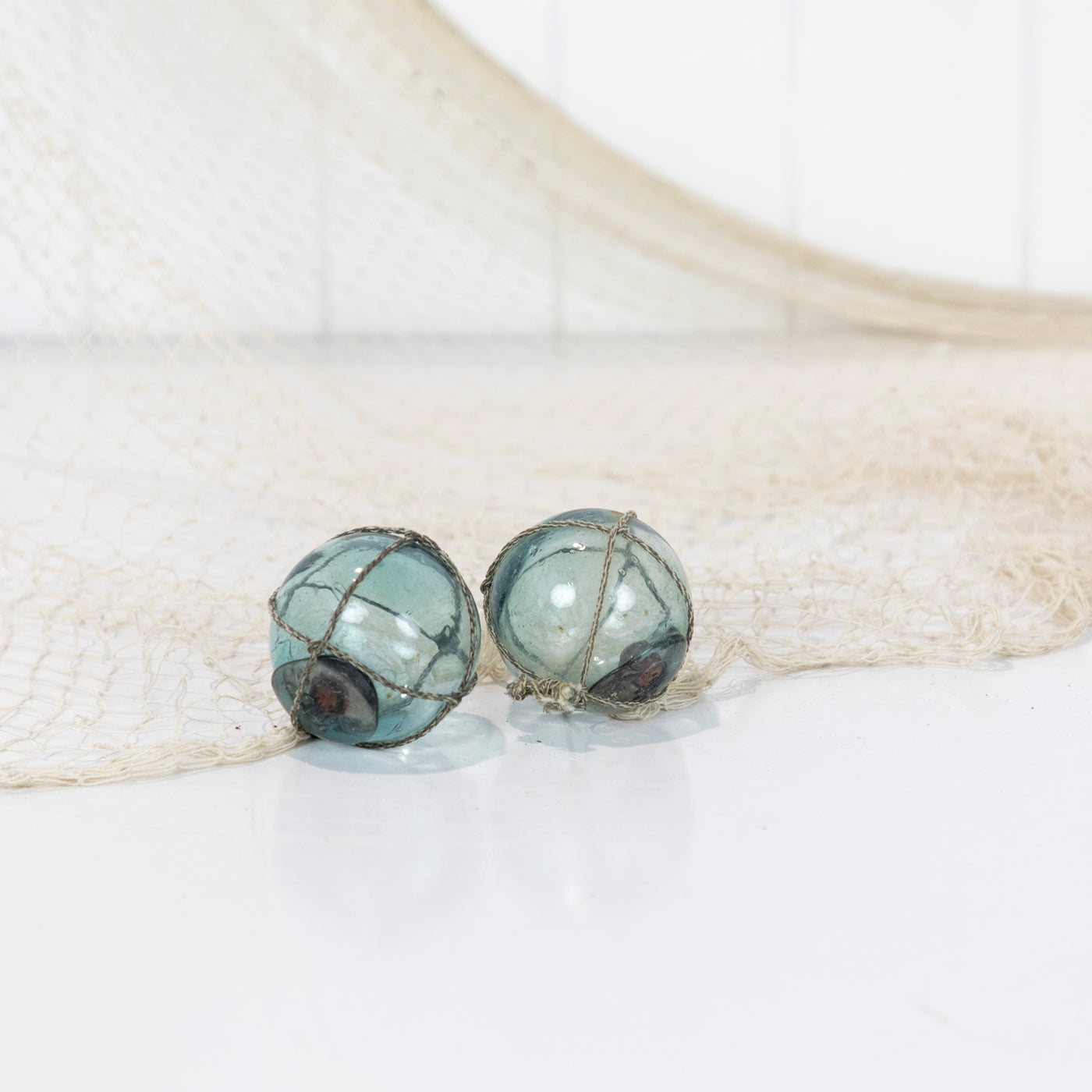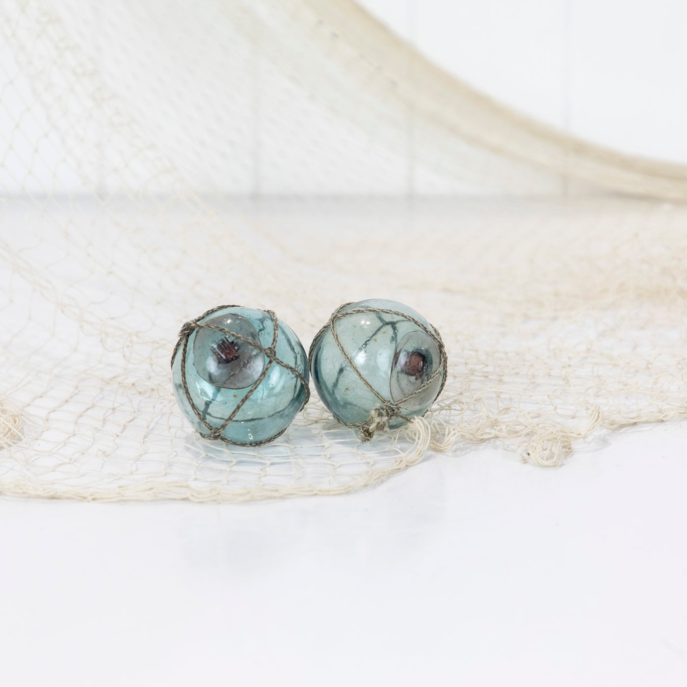 These Japanese glass floats are around 2inch in size. They would once have lined the edge of a fishing net.