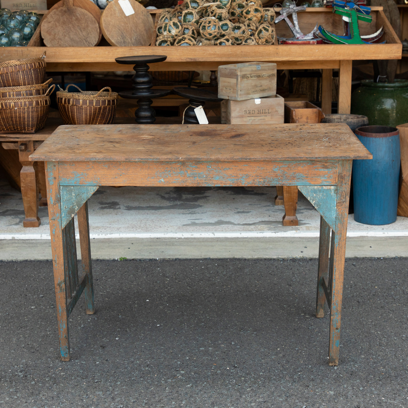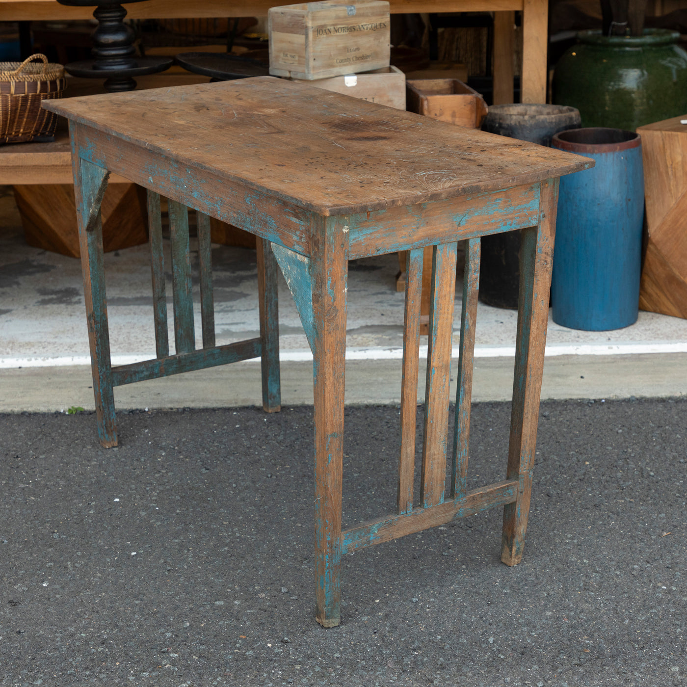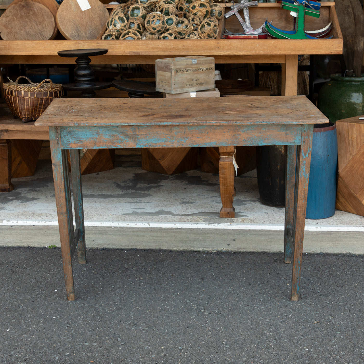 Just the right size for a small desk or entry way table. It has so much character, with a chippy blue finish.