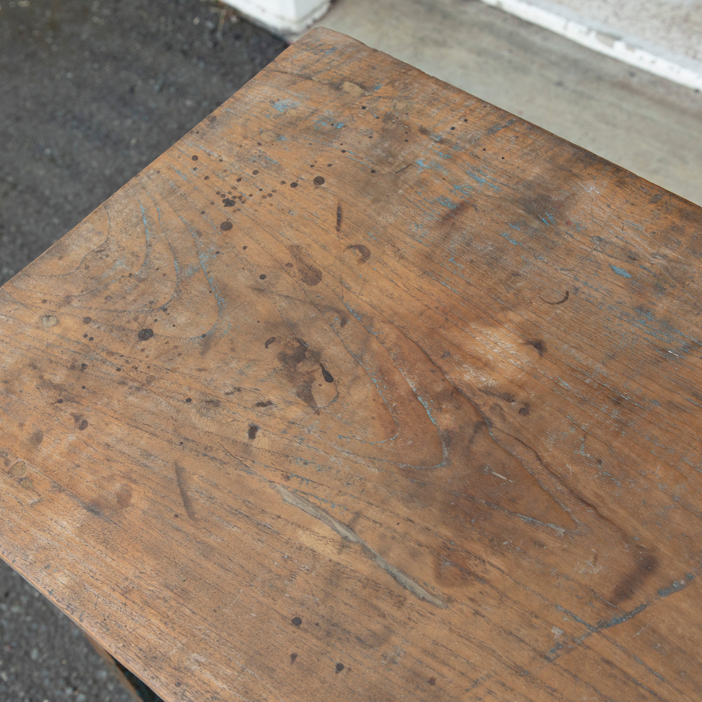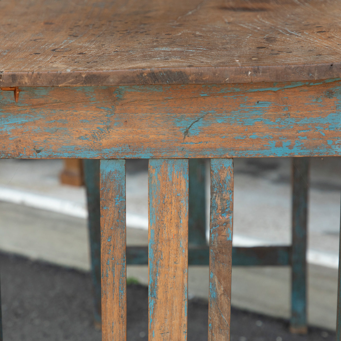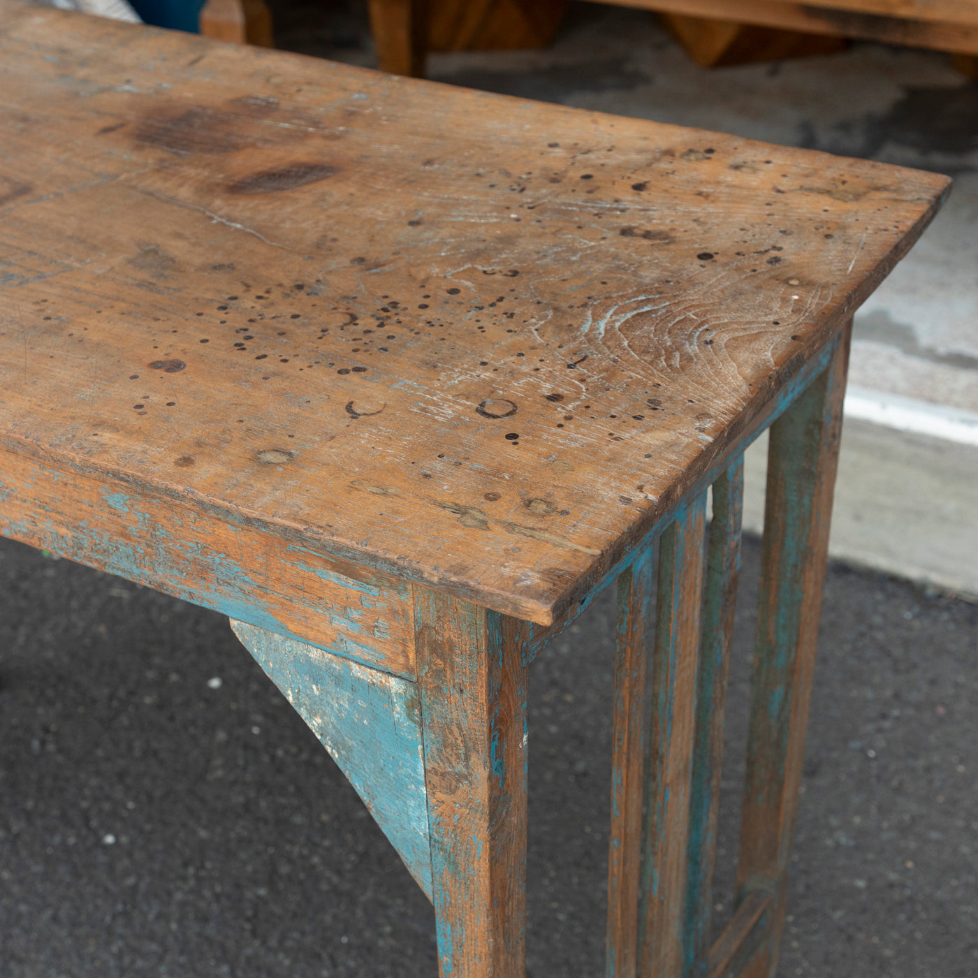 Just the right size for a small desk or entry way table. It has so much character, with a chippy blue finish.