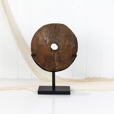 This amazing piece is an old wooden cart wheel!